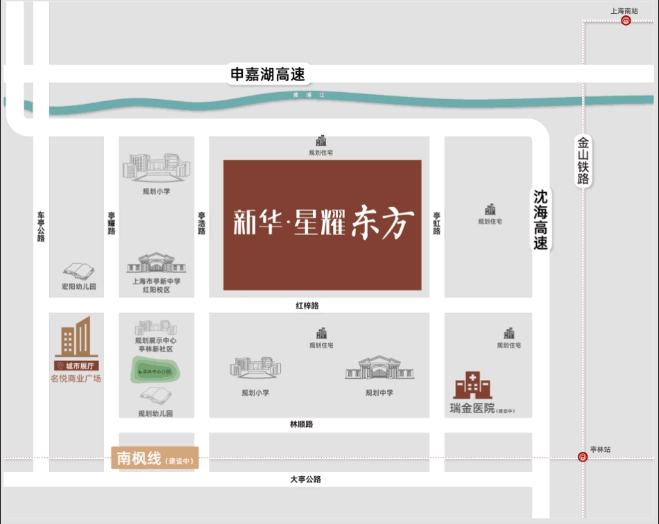 医疗配套:距离亭林病院约2公里,项目南侧有正正在扶植中的三甲级瑞金病院,金山院区一期项目,用地面积132亩,设置医疗床位400张,目前扶植总投资约10。3亿元,南侧的体育公园配套设备也正正在慎密的筹备中。